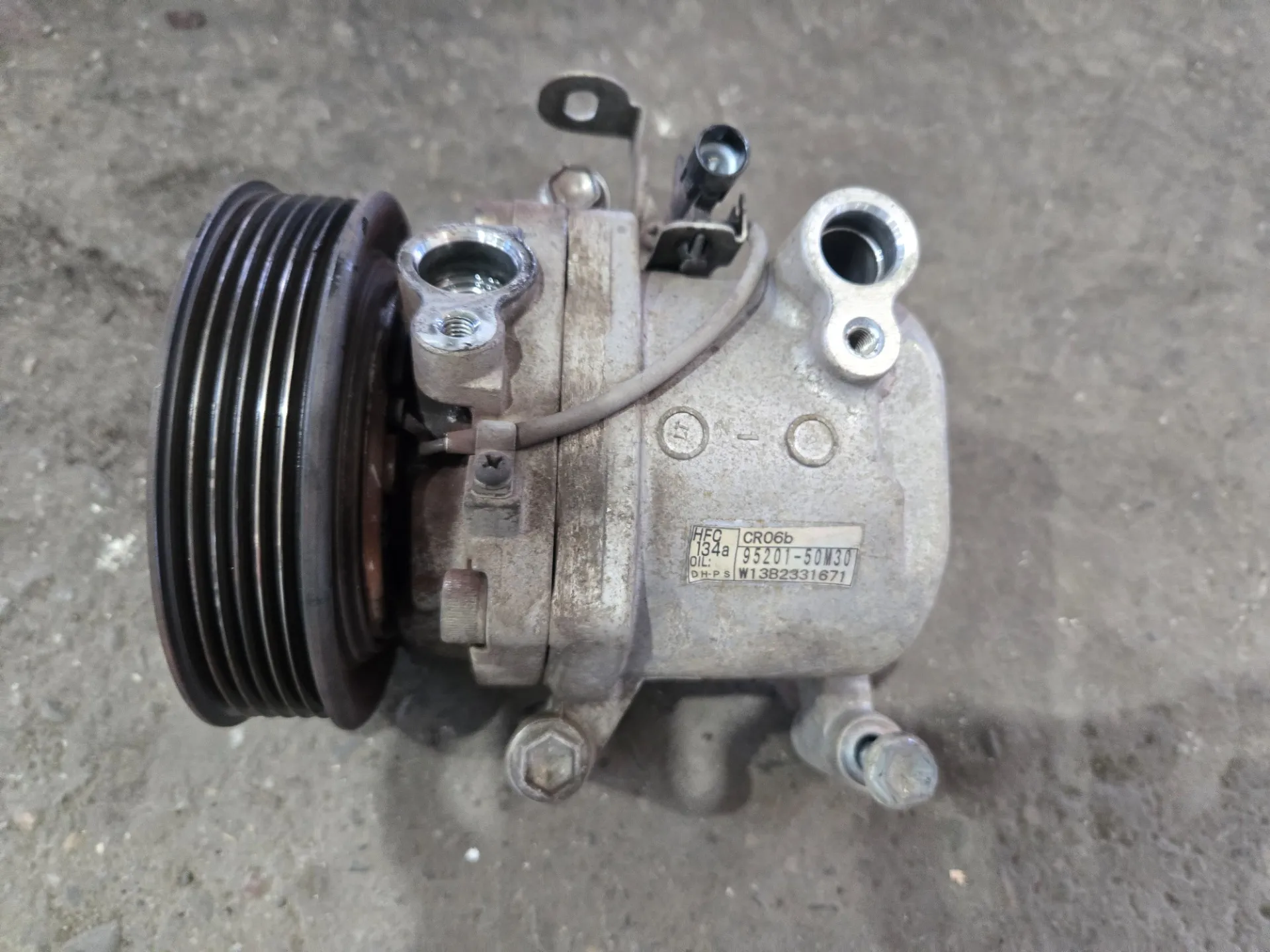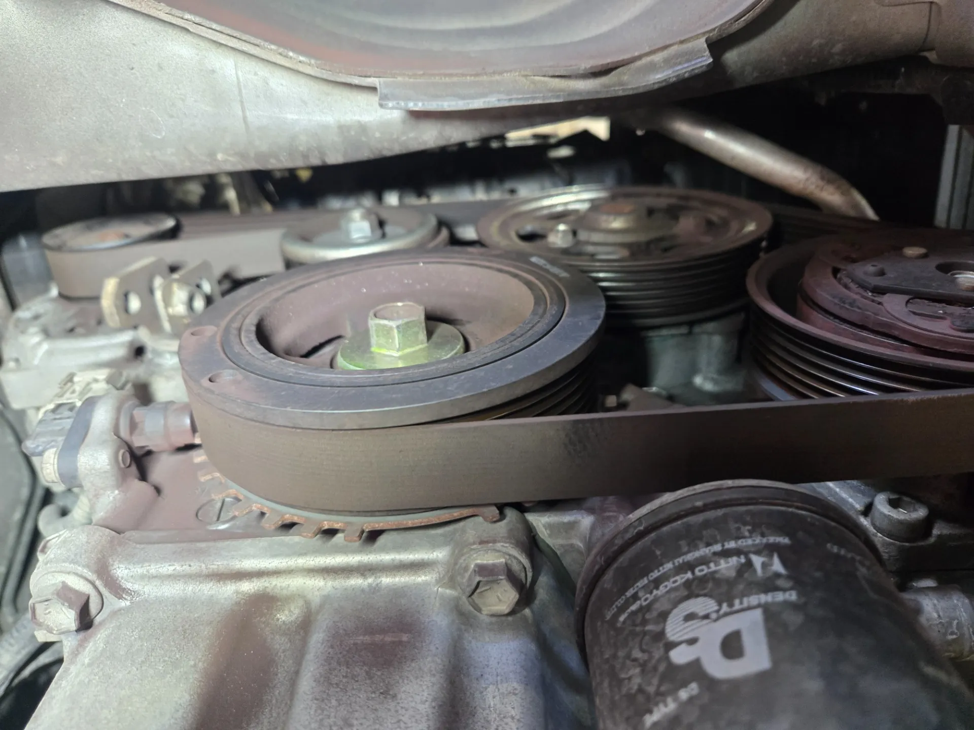 ワゴンRの異音のお車です。エンジンルームから変な音がするから見てほしいとのことで入庫しました。さっそくエンジンをかけるとガラガラすごい音がしてベルトがついていてエンジンが掛かっているとわかりづらいのでベルトを外した状態で各部のプーリーを手で回して確認していきます。そうしたらエアコンコンプレッサーのプーリーがガタガタで今にも外れそうな状態でした。お客様が言うには一回エンストしたとのこと、プーリーががたつき円滑に回らなかったため抵抗となりエンストしたとご説明しました。リビルトのエアコンコンプレッサーと交換し当社のエアコンガスクリーニング出来る機器に繋ぎ、内部クリーニングとガス補充して漏れがないか確認したら納車となります。