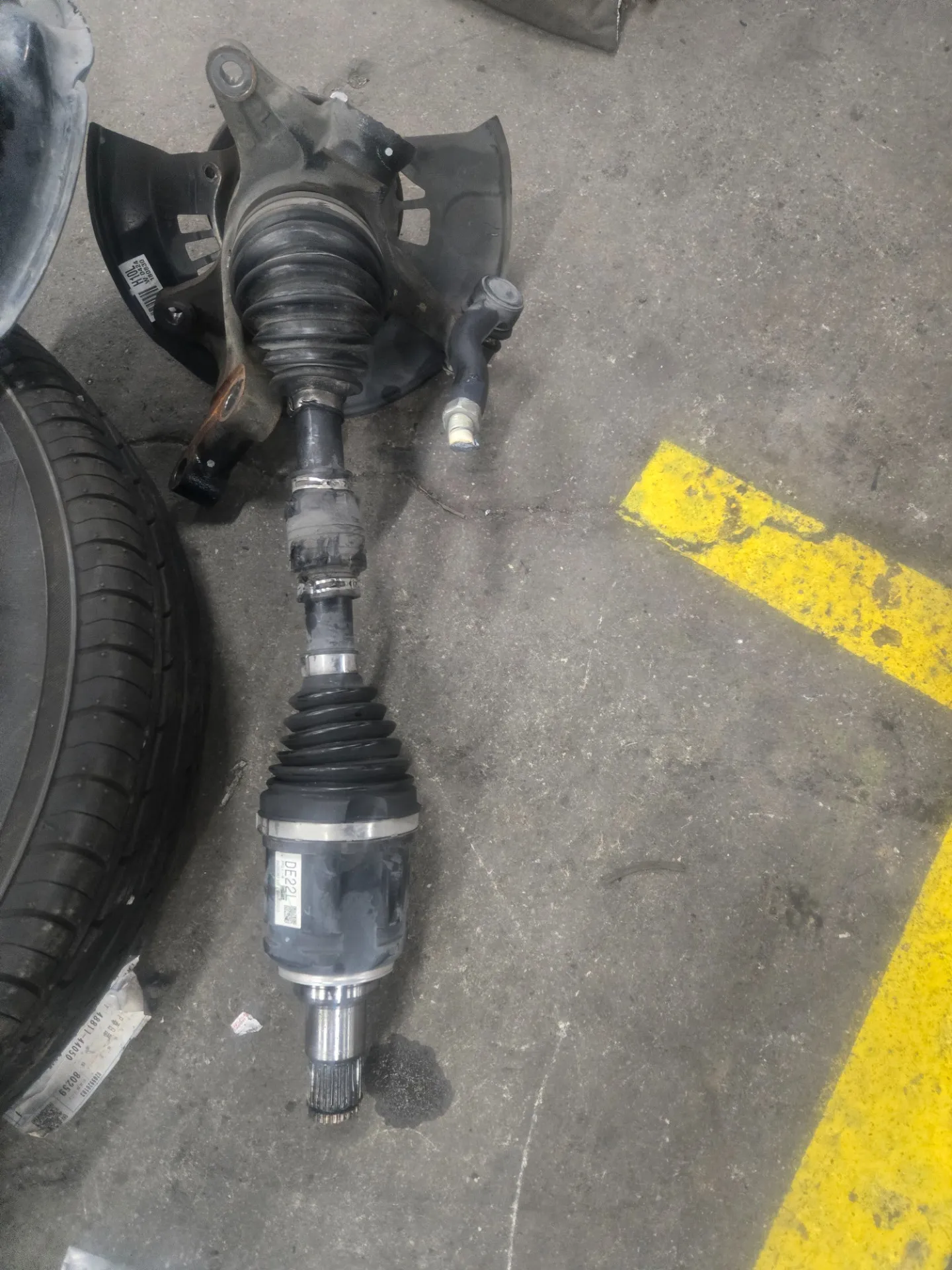 藤沼自動車サービススタッフです。今回はエスクワイヤのフロント足回り修理です。クロスメンバー交換、ギヤボックス交換、ショックアブソーバ、ドライブシャフト、ハブ、ナックル、ロアアーム、スタビライザーバー、スタビライザーリンクなどを交換しました。